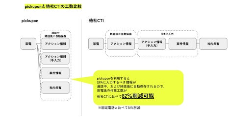 他社CTI利用時と比べて約82%、固定電話と比べて約92%の入力作業を削減でき、1日あたり約1時間10分の作業時間を削減可能とする。月間換算で約5万円の人件費削減につながるほか、担当者が顧客対応に割ける時間が増える点も大きい。