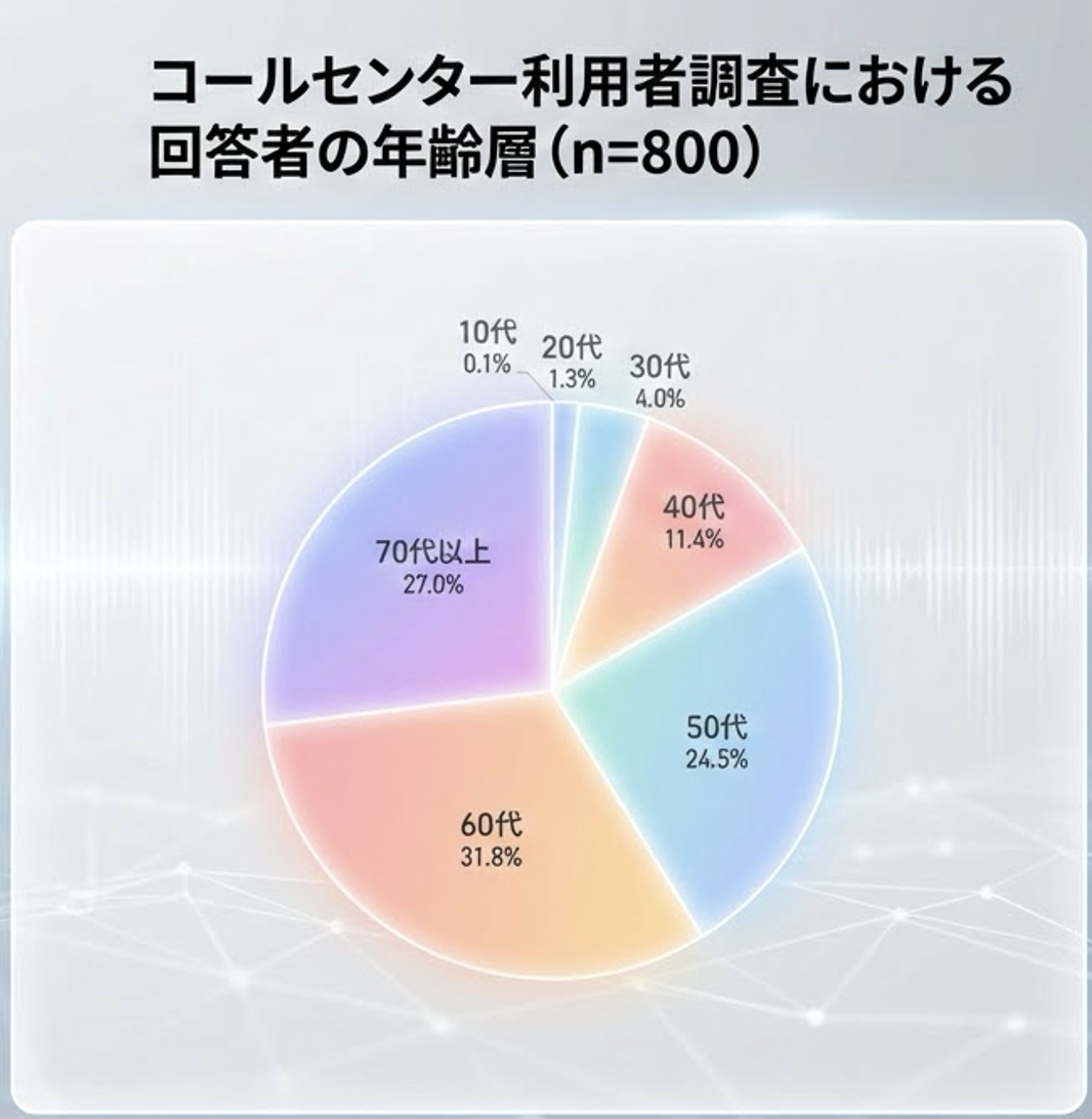 ボイスボットは、日本の人口構造を考慮に入れると、大きな可能性を秘めている。同じく「コールセンター白書2025」で収録している「コールセンター利用者調査」においては、回答者として募集した消費者の約59%を「60代〜70代以上」が占め、50代まで入れると8割を超える。