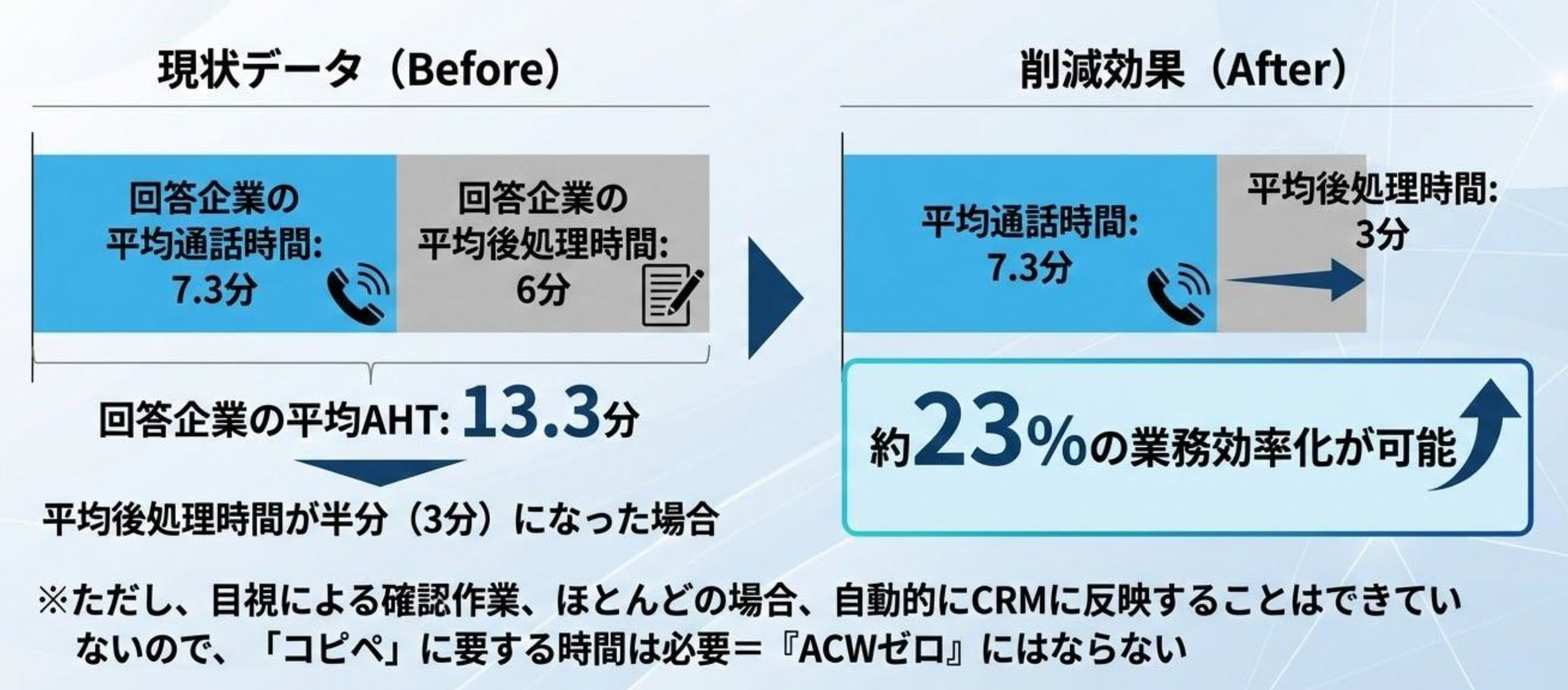 短縮後のAHT=ATT6分+ACW2.5分=8.5分