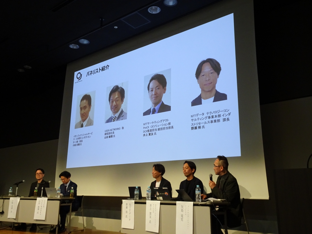 事例セッションでは、イオンフィナンシャルサービス CS本部 コンタクトセンター3部 部長の小松 史貴氏、NTTマーケティングアクトProCX CXソリューション部 DCX推進担当 統括担当部長エグゼクティブディレクターの井上 賀友氏に加え、USEN NETWORKSの山田氏、NTTデータの野瀬氏が再登壇。「生成AIのマネジメント活用──現在進行形と未来予想」と題して、主に「オペレータを支援するEX(従業員体験)施策」についてディスカッションした。