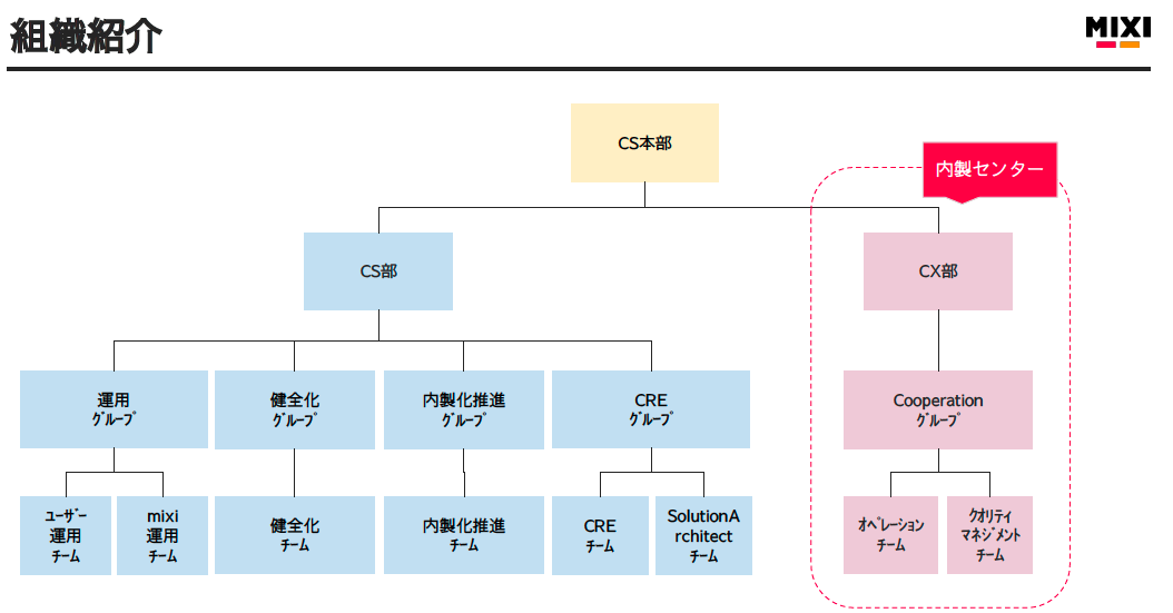 「モンスターストライク」をはじめとしたゲームなどのデジタルエンターテインメント事業、コミュニティ、スポーツ事業など、さまざまなビジネスドメインを持つMIXI。CS部門では、主にモバイルゲームに関する顧客対応を中心に、一部の付帯サービス(例:TIPSTAR。競輪、オートレースなどの投票アプリ)のサポートも実施している。